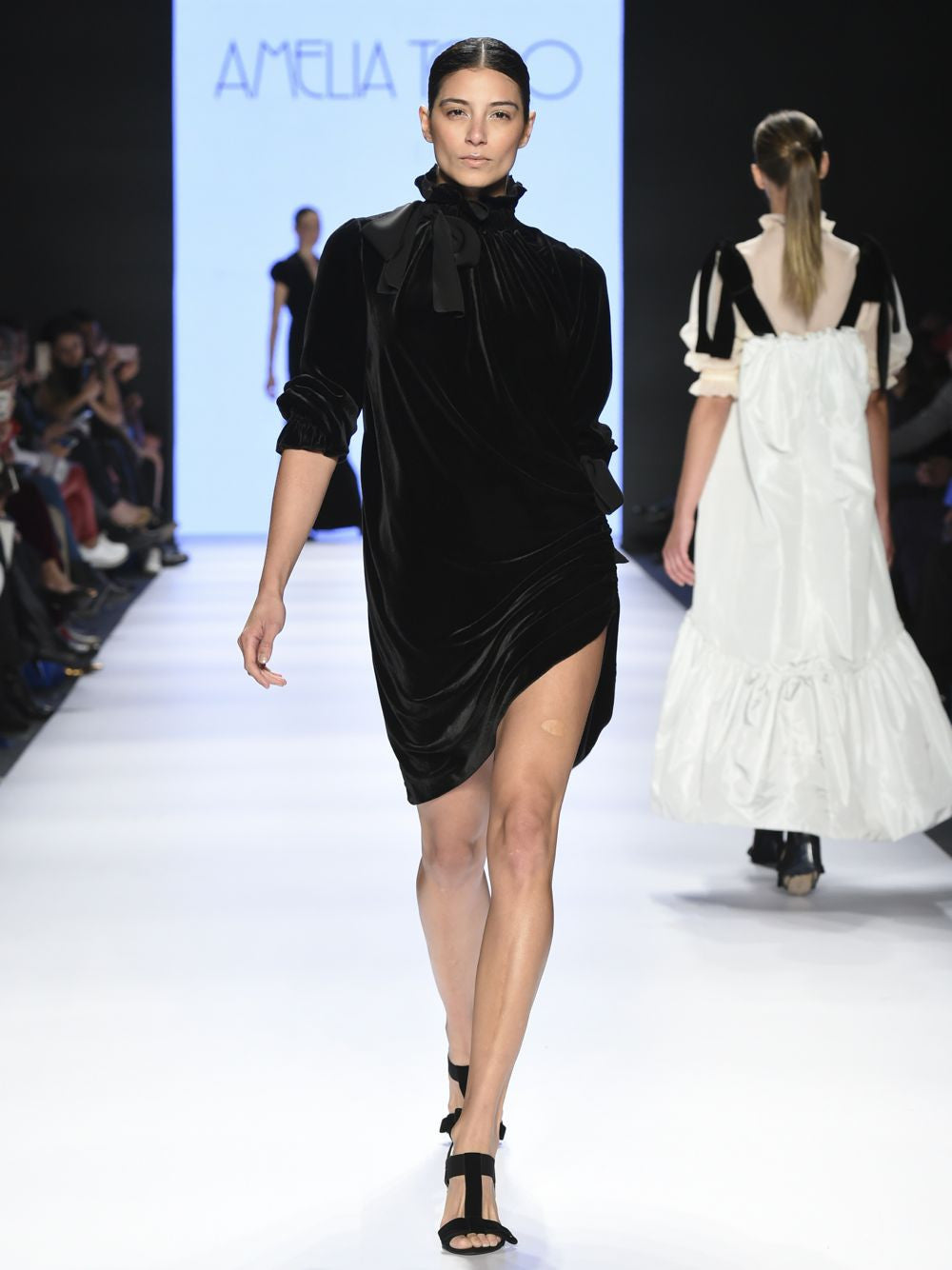Asymmetrical velvet dress.