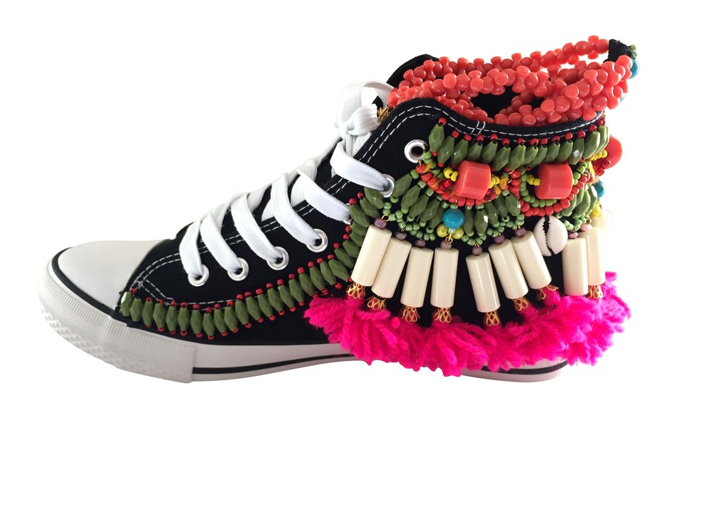 Huxley Beaded Embellished High Top Canvas Sneakers.