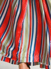 This is a contemporary take on the brand's ethical aesthetics. It is beautifully made from a smooth lightweight satin with slashing prints. Draped at the top with an off the shoulder effect, a band to give a waist fit, the skirt falls to a flatter of full pleats. Pair with a bracelet bag and a platform to evoke a very feminine mood.