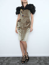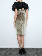 Short sleeve velvet dress with hand embroidered beaded embellishments.