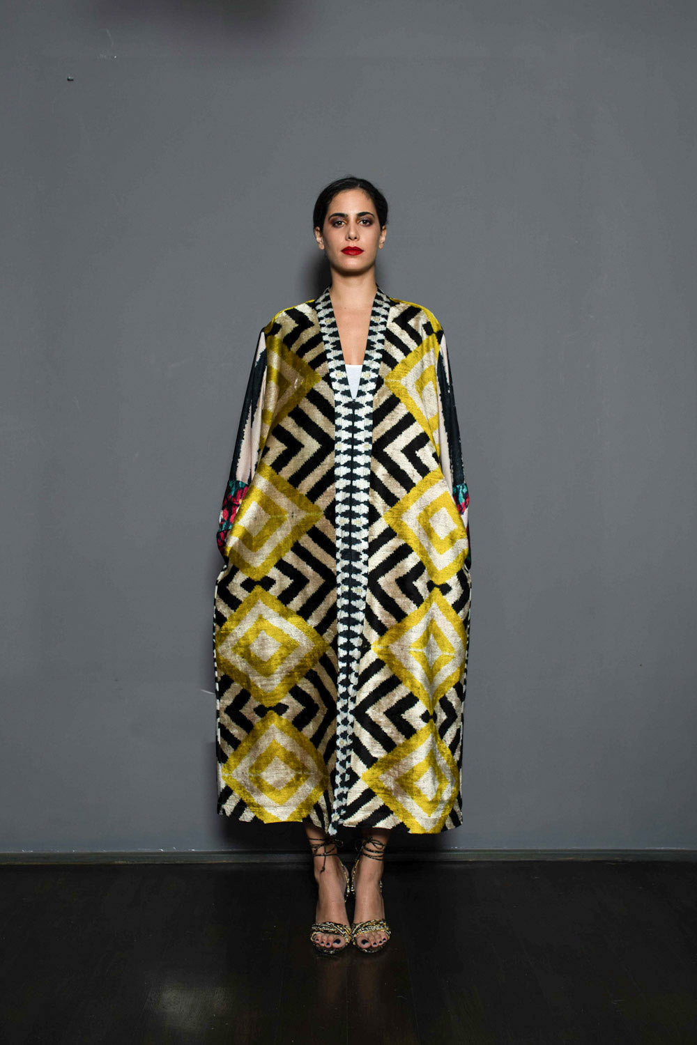 Kaftan Kimono dress, multi-colour print in patchwork style.