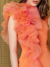 Embellished tubino dress decorated with ruffles.