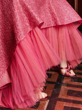 - Layered tulle inside giving volume to the asymmetrical pleated skirt